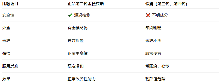 四、第二代金標藤素 vs 假藤素(差異總整理)